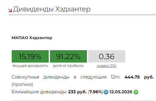 Текущий прогноз на следующие 12 месяцев превышает 15%. Совет директоров уже одобрил выплаты за 2025г: 27 апреля пройдёт собрание акционеров, на котором выплаты скорее всего утвердят, а закрытие реестра будет 12 мая, так что в мае можно получить около 8% (233р на акцию).