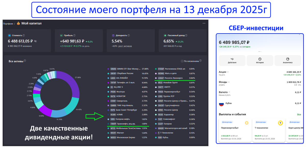 К слову, в моём портфеле есть обе эти акции (скрин состава моего портфеля из сервиса учёта инвестиций и приложения СБЕР-инвестиции):