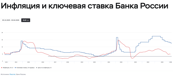 Инфляция за неделю составила 0,17% после 0,19% неделей ранее. С начала года 2,95%. Годовая инфляция 5,86%. Инфляция высокая опять. Но аналитики всё равно считают, что ключ на ближайших заседаниях будут снижать дальше.