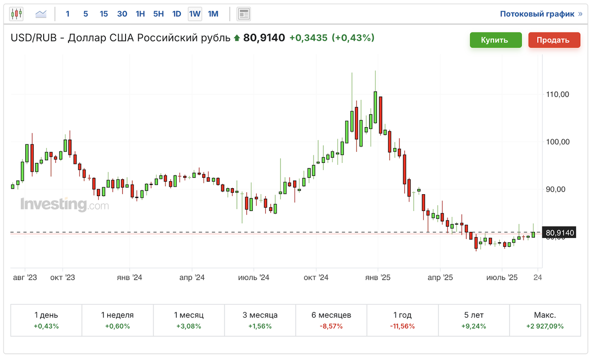 Даже ходил на 82,73, но не удержался. Изменение за неделю: 80,15 → 80,91 руб. за доллар (курс ЦБ 80,02 → 80,74). Юань 11,10 → 11,24 (ЦБ 11,10 → 11,19). Потихоньку, но рубль слабеет.