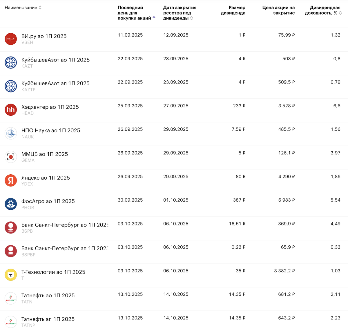 Ближайшие дивиденды: