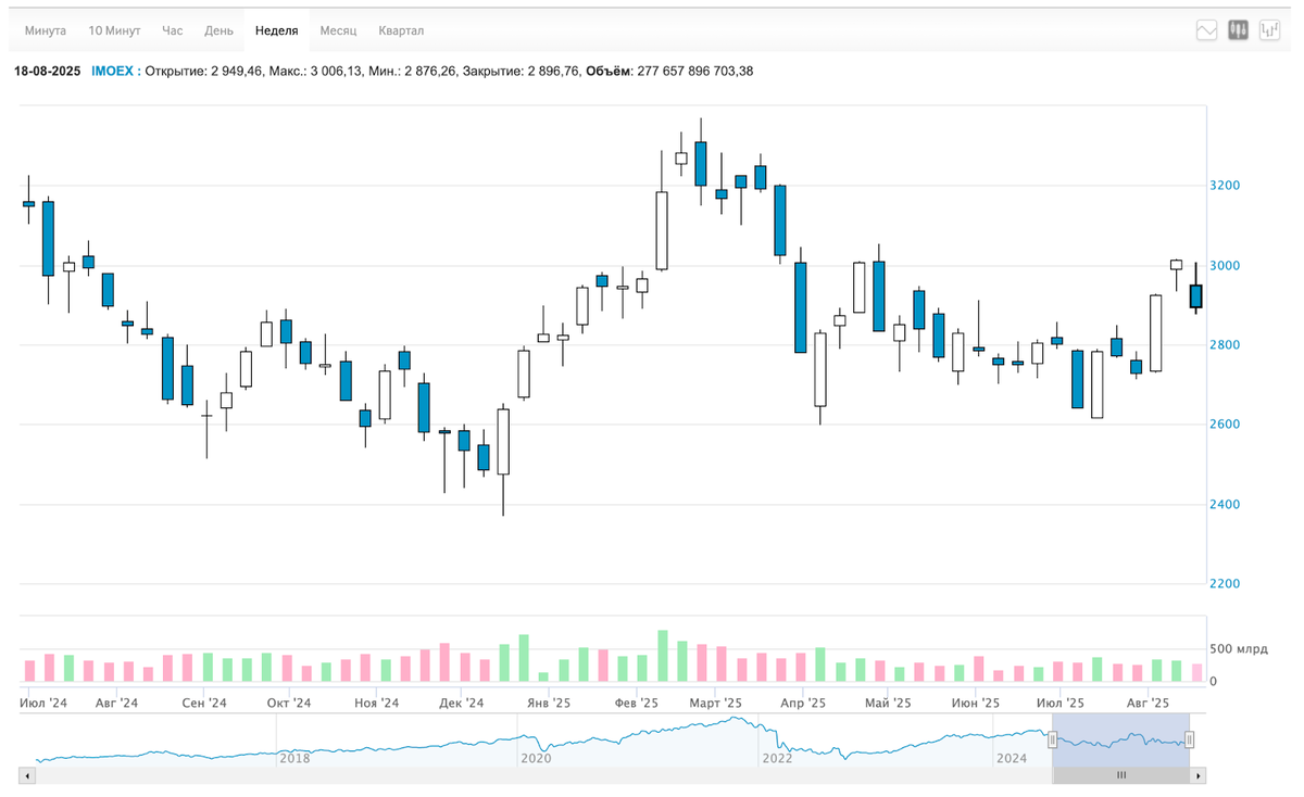 Итоговое изменение IMOEX с 3 012 до 2 896. А помните, был такой саммит на Аляске?