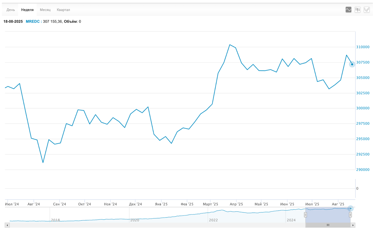 Пока достаточно. Индекс MREDC 308,6к → 307,1к за метр. Люди вспомнили, что ключ до сих пор высокий.