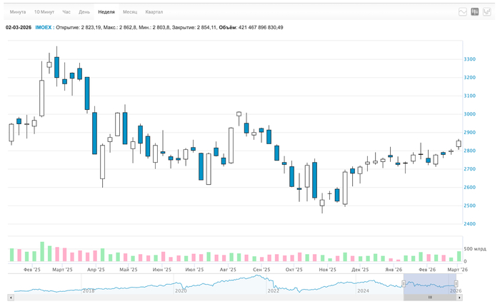 Активно переговоры пока не ведутся, Трамп сосредоточился на Иране и росте цен на нефть. Заодно и акции выросли. Итоговое изменение IMOEX с 2 799 до 2 854.