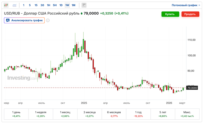 Эксперты потирают потные ладошки. Изменение за неделю: 77,30 → 79,00 ₽ за доллар (курс ЦБ 77,27 → 79,15). Юань 11,20 → 11,40 (ЦБ 11,23 → 11,43). Минфин объявил, что в марте приостановит операции с валютой в рамках бюджетного правила.