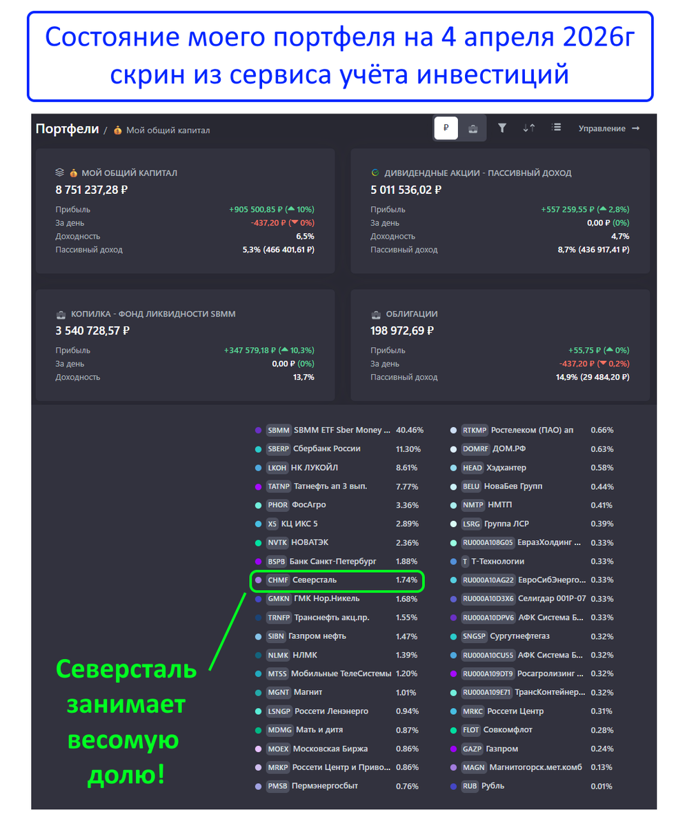 Меня интересует судьба этого металлурга, так как он занимает весомую долю в моём портфеле (скрин состава из сервиса учёта прилагаю):